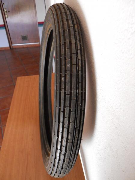 Neumático Clásico marca Pirelli fabricado en Manresa de medidas 3.00-19 sin usar con todo su dibujo y la goma en buen estado. Gastos de envío no incluidos en el precio.