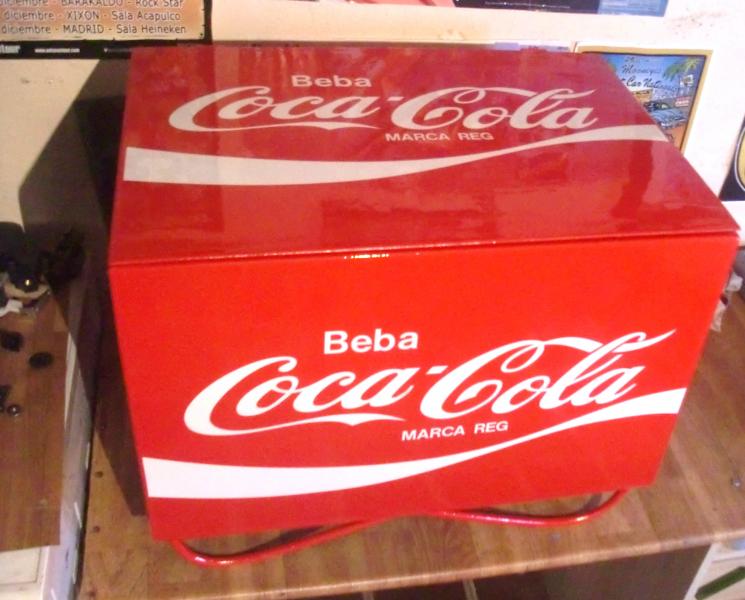 vendo nevera de coca cola años 60 restaurada con las botellas de coca cola y una sin abrir con su refresco original todo en perfecto estado
