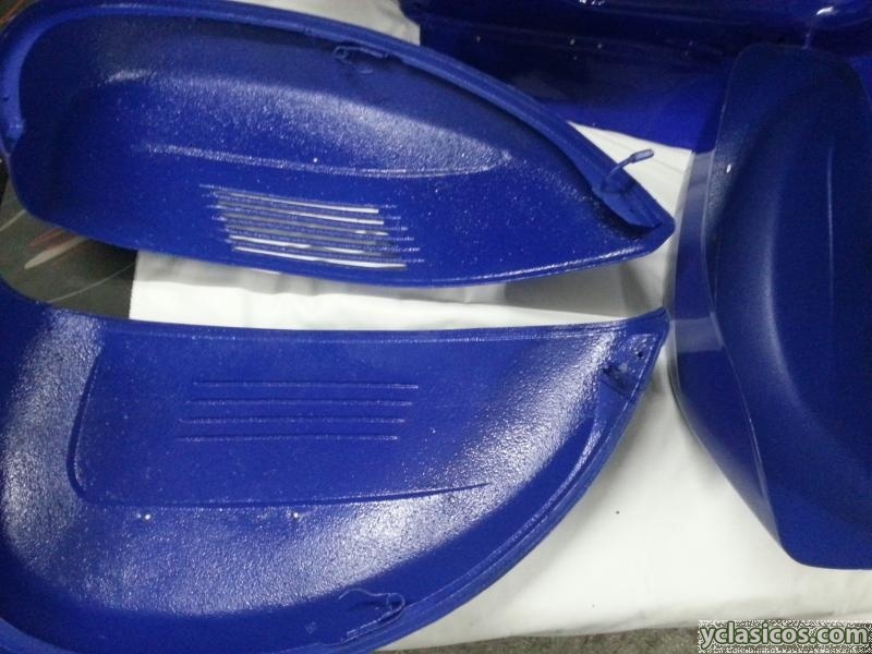 Se vende vespa sprint restaurada al 100%, interiores antigravillados pintados y barnizados, todas las piezas estan bien no hay nada roto. El guardabarros es nuevo, la horquilla esta restaurada lista para montar y contiene el cableado electrico original. Solo falta deposito, tenia intencion de poner uno con engrase pero no puedo afrontar la restauracion completa he pagado 800 euros por el trabajo de chapa. Esta de baja definitiva del 1998. Portes pagados hasta un radio de 500 km Para mas informacion contact. Color Azul Aguamariana