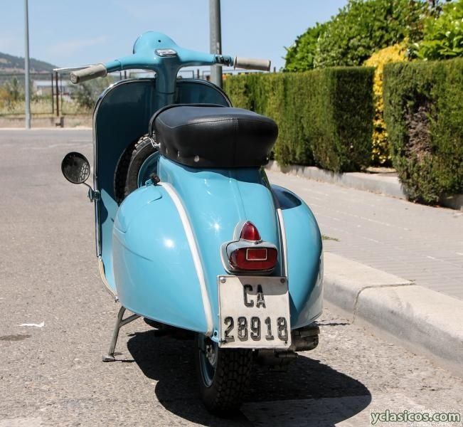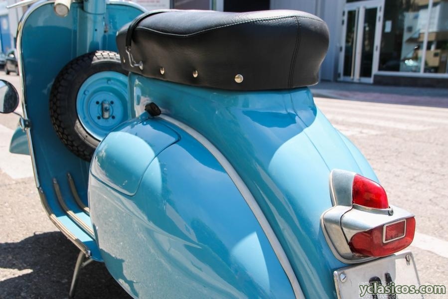 Vespa 125L de 1962 en su color azul saboya original, matrícula y placa original, documentación al día (lista para transferir). Completamente desmontada para restaurar (carrocería hecha en taller profesional), motor hecho, frenos, cableado, neumáticos... y piezas de carrocería nuevas: bordón cromado, puños blancos, juntas de cófanos blancas, retrovisor, juego de tiras del suelo blancas completas, sillín original tapizado, faro delantero, embellecedor de guardabarros, cláxon... Conserva la cédula de identificación original.