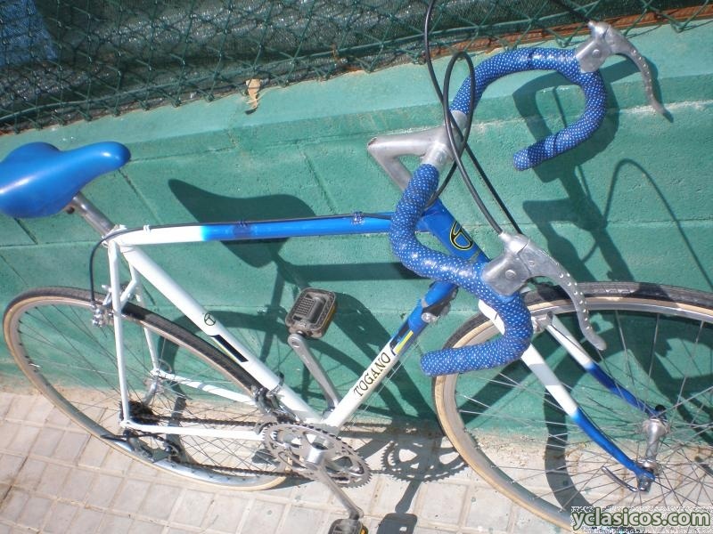 Vendo bicicleta clasica de carretera Marca Togano, talla 54-55. Neumaticos Michelin Tracer y cinta del manillar casi nuevos. Lleva cambio trasero, desviador y manetas del cambio Sachs Huret. Frenos Lusito. Llantas de aluminio Rigida. Bielas solida. Manillar Indur. Bujes Maillard. La bicicleta esta en buen estado. Pintura del cuadro y calcas con alguna pequeña marca de uso reparada. Restaurada, ajustada y engrasada, lista para rodar. Se puede ver en Barcelona. Posibilidad de envio a toda España. Gastos de envio a cargo del comprador.