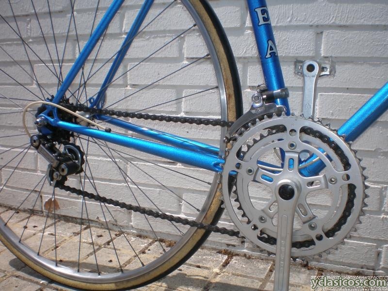 Lleva llantas de aluminio Weinmann. Cambio trasero, desviador y manetas del cambio Simplex. Frenos Weinmann Type 500. Pedales Notario. Bielas Solida. Tija Akront. Asiento Ges Olimpic.