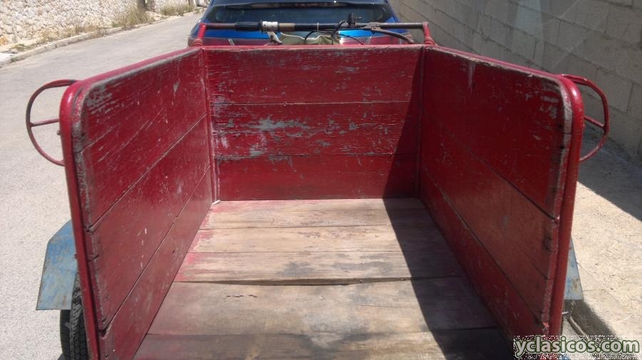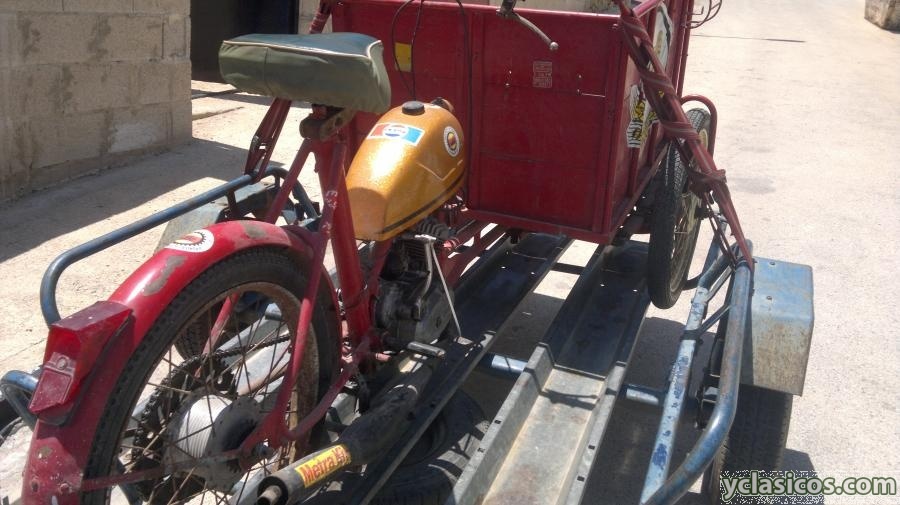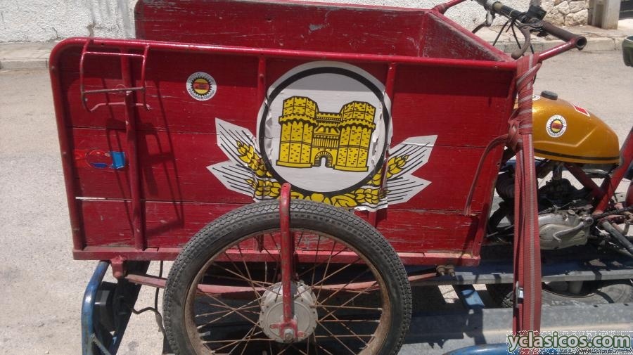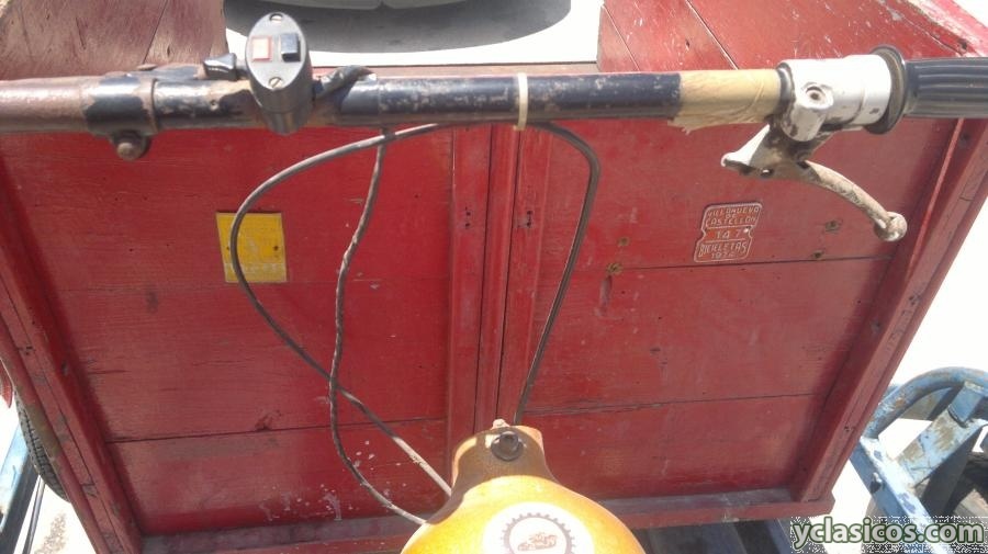 Pieza unica, triciclo años 50, motor derbi rabasa 3 marchas, depósito de fibra, conserva sus ultimas placas de circulación del 73 y 74, todo en su estado original, caja de madera, suspensión ballesta, motor y chasis en perfecto estado, ruedas nuevas. . . . Es una pieza para coleccionistas, ya que se utilizaba en los años 50 para el reparto de la cerveza Turia, conserva hasta las pegatinas originales, todo en perfecto estado.