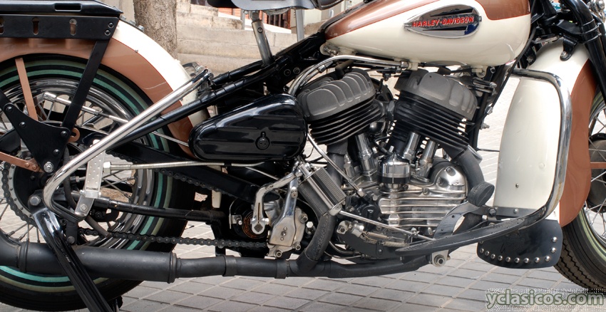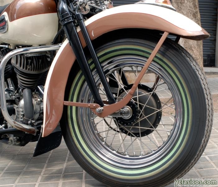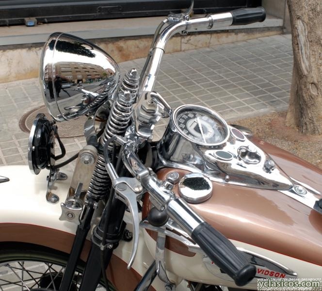 Impresionante WLA de 750 cc que destaca por su estado de conservación y por el cuidado con que ha sido tratada. Ha sido reconstruida y restaurada respetando el modelo original de 1942. Cuenta con batería dinamo y un motor bicilíndrico de cuatro tiempos.