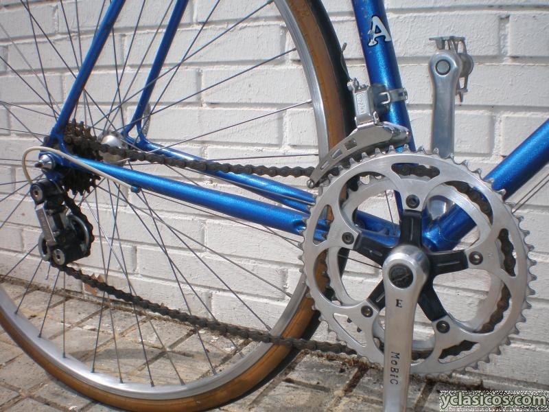 Lleva cambio trasero, desviador y manetas del cambio Simplex. Frenos Weinmann Type500. Llantas de aluminio Weinmann. Platos y bielas Mobic. Cassete de 5 piñones Regina Extra. Pedales Olimpic integral. Asiento Ges Olimpic.