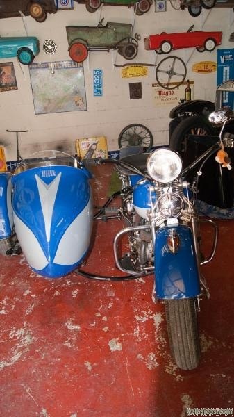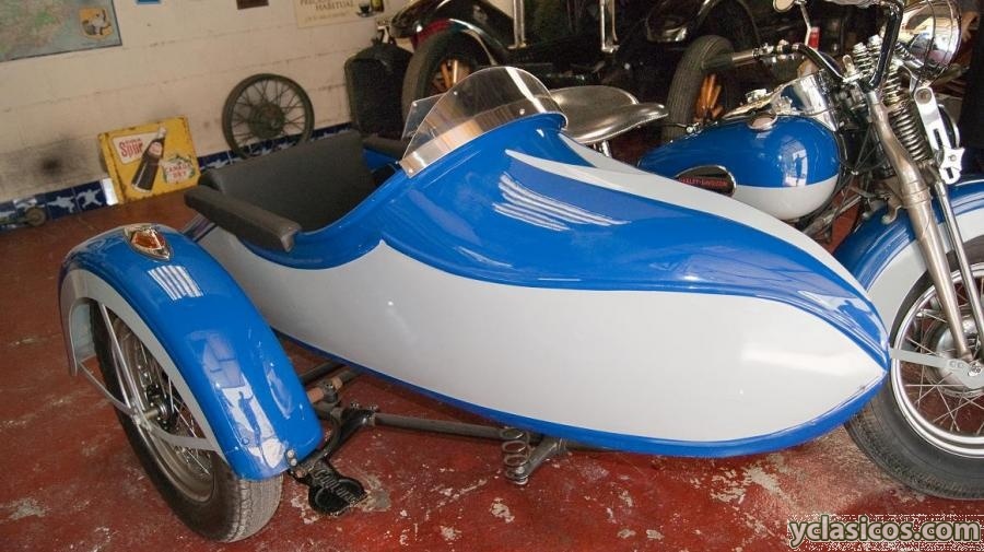 Harley Davidson con sidecar y marcha atrás, del año 1939, pieza original, con matricula histórica, en perfecto estado.