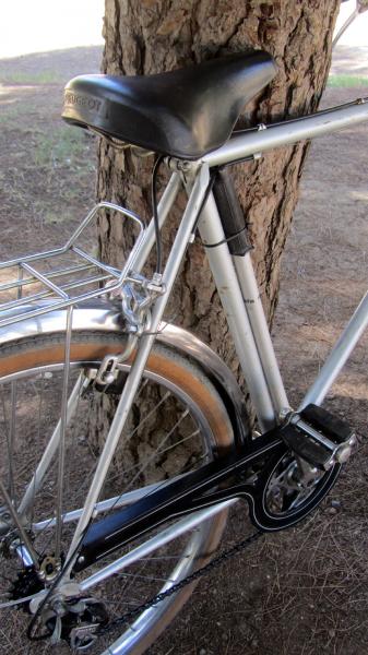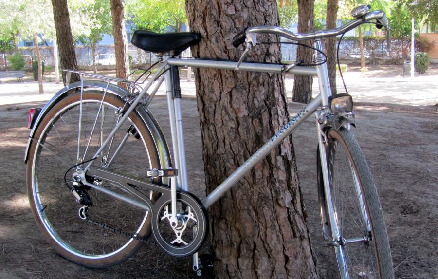Bicicleta clásica Pugeot en buen estado. Ruedas de 650 mm o 28 . Piezas originales peugeot excepto los pedales. Bomba de inflar. Timbre. cambio de velocidades, un sólo plato. Luz original en funcionamiento. Medida dela cogida del sillín al suelo 80cm. Bonito manillar. Frenos típico de Peugeot. Cambio simplex.