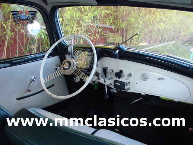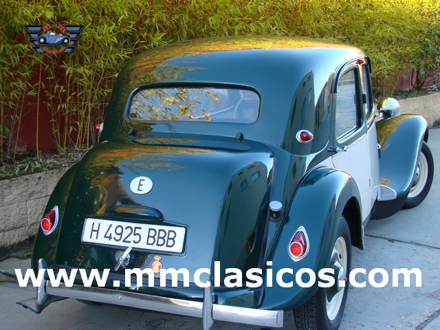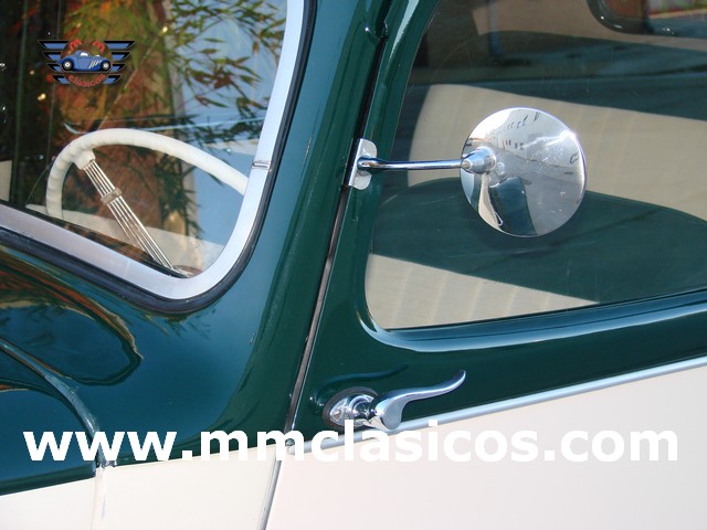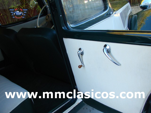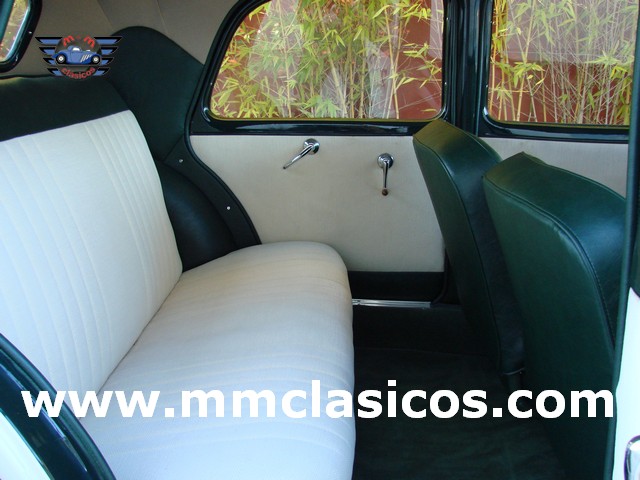 Se encuentra en un excelente estado. Ha sido completamente restaurado. Desmontada toda la carrocería, dispone de pintura bicolor verde y beige, se han sustitituido gomas, conexiones eléctricas, etc, etc. El motor se ha reconstruído por completo y preparado las válvulas para gasolina sin plomo. Monta multitud de elementos nuevos y accesorios cromados en la carrocería. Dispone de opciones interesantes como los faros y parrilla frontal cromados. El interior se ha renovado completamente con pintura del salpicadero y marcos interiores, tapizado de guarnecidos, techo, asientos y enmoquetado con telas de calidad tambíen en combinaciones verde y beige. Está matriculado en España con las ventajas de la Certificación de Vehículo Histórico. ITV cada 5 años y toda la documentación en regla. Ideal para rallies de larga distancia o para servicios de alquiler para bodas o celebraciones. Un clásico fiable, bonito y confortable. Los puede encontrar más baratos pero nunca como este.
