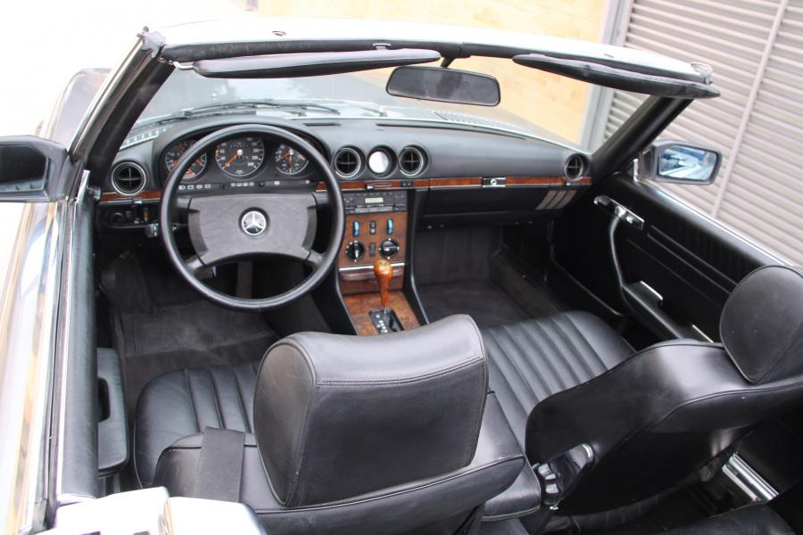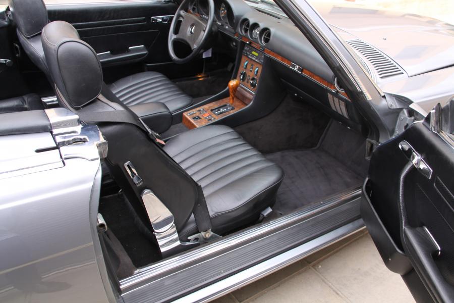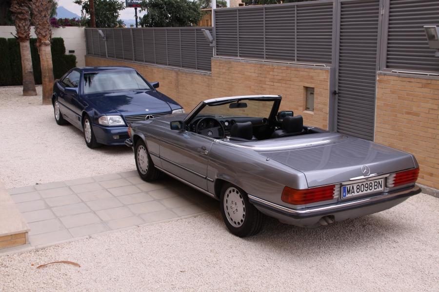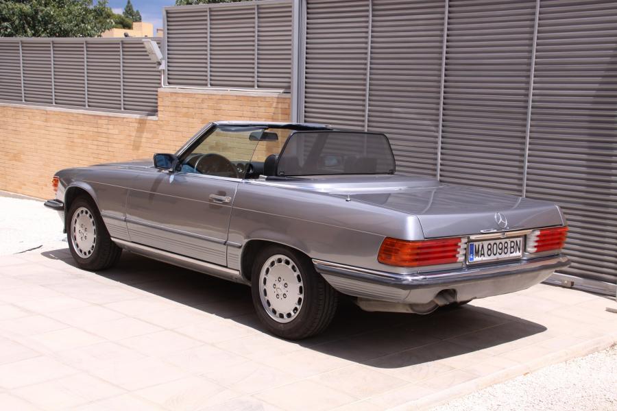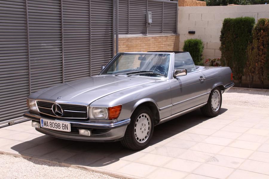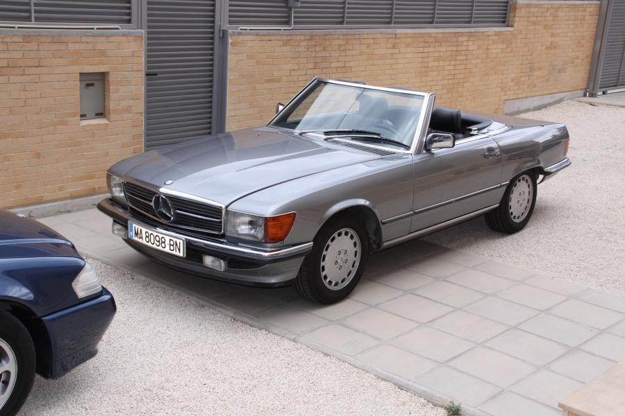 Vendo espectacular Mercedes descapotable de la exclusiva versión 300 SL. Se trata de un W107 de la tercera serie, del año 1987, CATALIZADO, que dispone entre otras cosas de techo duro (hardtop), techo de lona nuevo, asientos traseros, radio cassette original, antena eléctrica, asientos calefactables, elevalunas eléctricos, llantas y tornillos originales y neumáticos a estrenar, etc.