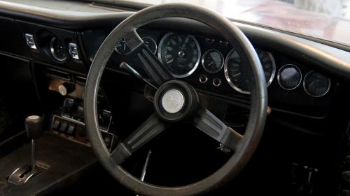 Comento eso porque según COYS, el número de chasis del coche encontrado en el granero, 'DBS/5829/R', corresponde al último Aston Martin DBS fabricado. Data de 1972 y equipa el motor de seis cilindros en linea. Lo que quiere decir que se trata de la última unidad del DBS 'a secas', el último con motor de seis cilindros en línea. Dicen que ha estado en ese granero desde al menos, el año 1980 y como todo coche abandonado está maltratado por el paso del tiempo, con las ventanillas rotas, cromados picados, oxido, tapicería ajada... necesita mucho trabajo pero al menos conserva el color original 'Dubonnet Rosso'.