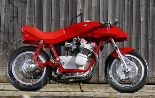 Que cosas tiene la historia. Creo que es sumamente interesante el cambio de rumbo de la firma y además, a pesar de haber sucumbido, volvió a renacer con mucha fuerza yendo directamente al segmento premium de la moto. Este rumbo de moto con categoría e imagen se empezó a labrar con la primera 250, para pasar posteriormente a la 600 y por último, a una de las motos más buscadas y apreciadas de MV Agusta, la 750 Sport, una de las motos de la década de los 70 más bonitas que puedes encontrar, muy en línea con la imagen que pretende y que logran en ocasiones, desprender con sus motos. No obstante, existe una versión, un prototipo creado sobre esta montura que es justamente a donde yo quiero llegar, con un diseño fuera de lo normal tanto dentro de MV Agusta, como del sector de la moto. Aunque tenemos que adelantar que fue el germen de algo que vino después.
