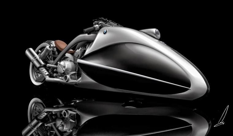 En ningún caso se trata de un vehículo oficial de BMW, es un trabajo externo a la firma con el que Mehmet ha querido dar su visión de como sería una montura de la Bayerische Motoren Werke con uno de esos bajos y largos carenados stremaline muy populares en la década de los 50. Bueno, más que una visión, ha querido realizar una imaginaria motocicleta retro futurista con toda la tecnología de BMW pero con un diseño inspirado en la vieja escuela, aunque está claro que su lugar favorito serían las autopistas, pues con ese carenado tan bajo no veo muy posible fuertes 'plegadas'.