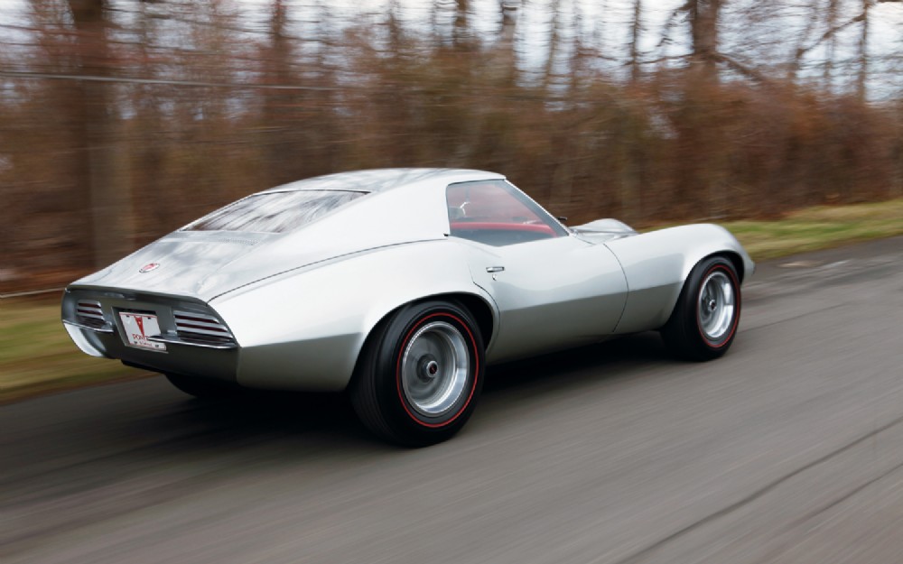 Lo que se ve en las imágenes es el Pontiac Banshee, conocido internamente como XP-833 y fabricado en 1964 con una carrocería biplaza de fibra de vidrio. Aquí en Europa es posible que se sepa poco de él, que no tenga más repercusión que ser un concepto llamativo, pero su creador es un tan John DeLorean al que muchos seguro que conocéis por su apellido y además, también supuso cierta polémica pues Pontiac era de General Motors (digo era, porque la dejaron morir) y éstos estaban muy involucrados con el Chevrolet Corvette, coche que se vería perjudicado por la llegada del Pontiac Banshee.