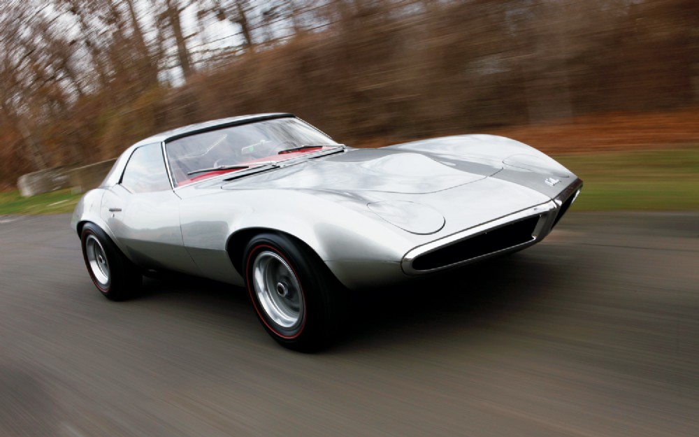 Se hicieron cuatro unidades por motivos comerciales pero solo ha llegado hasta nuestros días el coche de las fotos, que ademas de estae homologado para circular por carretera ha sido subastado por Dragone Auctions el día 30 de mayo. No llegó a producción, eso lo sabemos, aunque realmente si podéis verlo en las calles con relativa facilidad. Como los directivos de General Motors tenían miedo de que canibalizara las ventas del Corvette prefirieron que no llegara a la calle, pero usaron su diseño para la siguiente generación del Corvette lanzada en 1968, el C3. Incluso el salpicadero es casi idéntico al Pontiac Banshee XP-833 que diseño John DeLorean.
