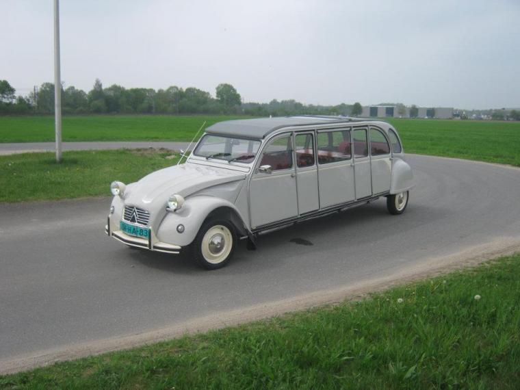 No es raro ver convertido en limusina casi cualquier coche del mercado, hay empresas especializadas en esos temas, pero convertir un Citroën 2CV en limusina ya es otro cantar