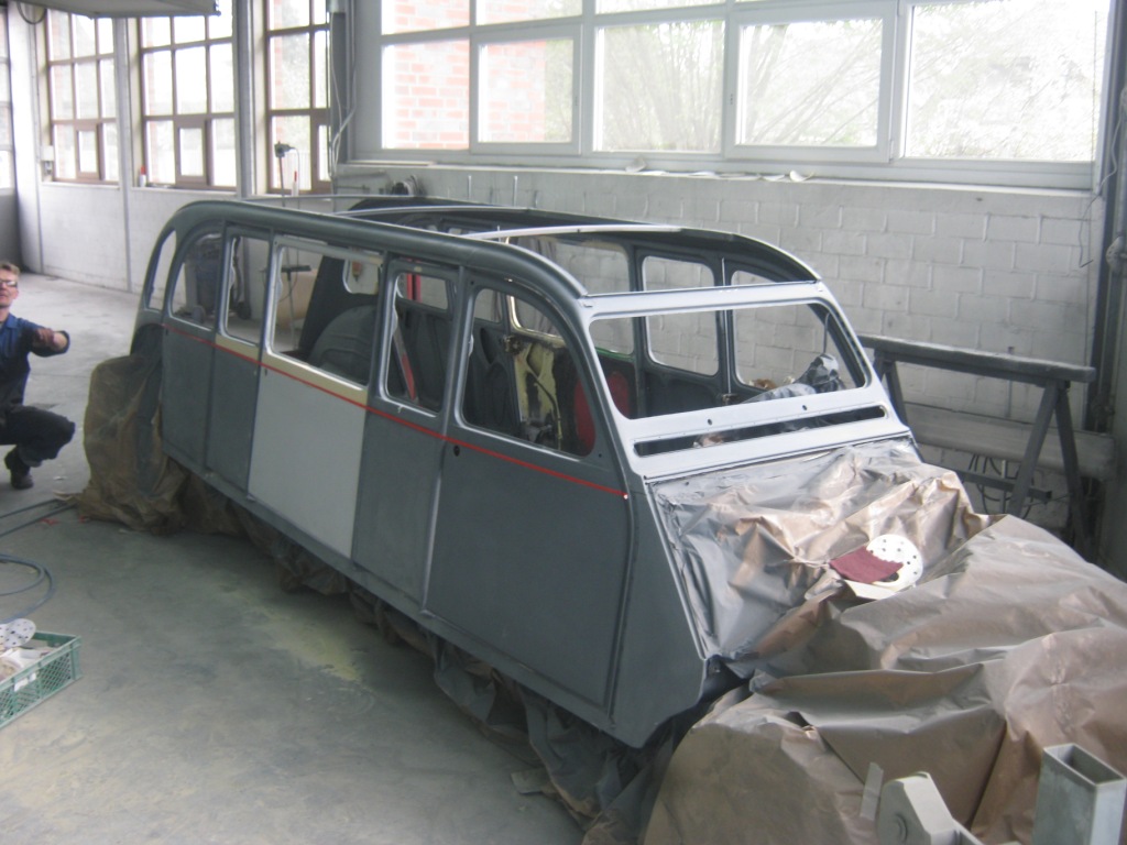 Se ha tenido que usar mas elementos de otras unidades de Citroën 2CV como las puertas o algunas planchas de la carrocería. De Citroën también es el cambio, aunque en este caso procedente de un Citroën GS. Para el interior, asientos de Citroën 2CV enfrentados, mesita, televisión, mueble bar y un equipo de audio.