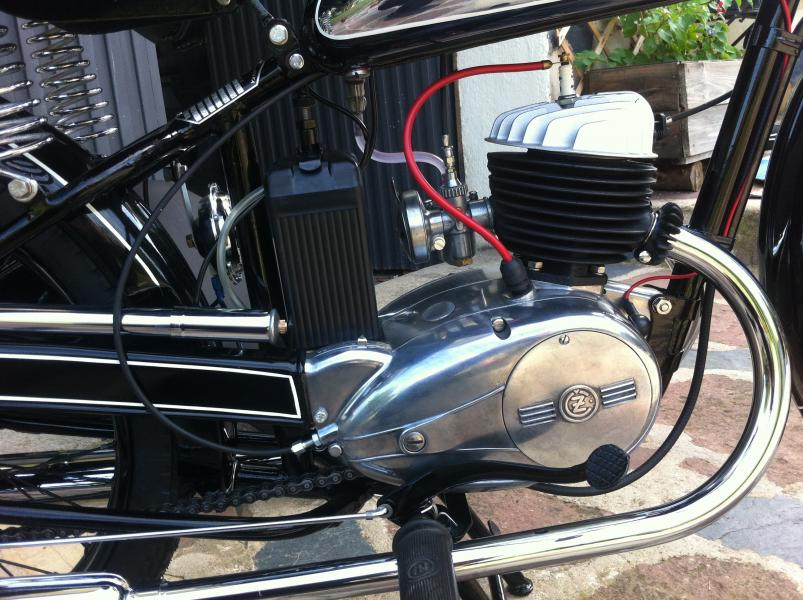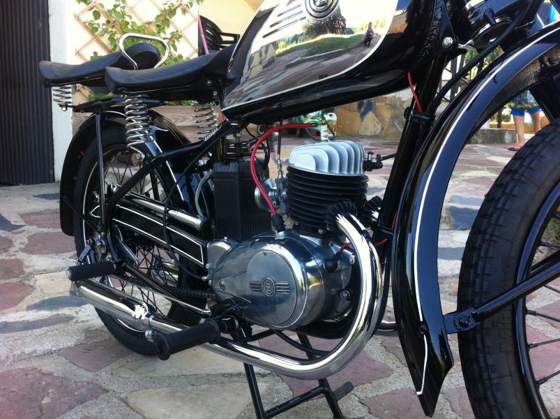 El ejemplar del que hablamos es una unidad de las más antiguas y difíciles de encontrar en Europa y aún más en España. Es probable que no existan más modelos como éste en territorio español y tampoco resulta fácil encontrar alguno de ellos en su país de origen. Se trata de una auténtica obra de arte absolutamente exclusiva del modelo original CZ 125 B. Está restaurada hasta el último centímetro gracias a la pasión y maestría de un mecánico con gran ingenio. Funciona perfectamente. Resulta fascinante el brillo y la resolución de cada detalle trabajado a mano durante más de dos años.