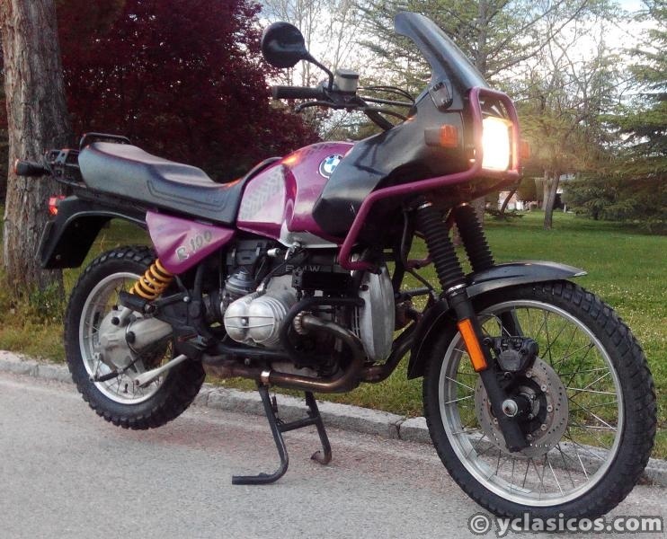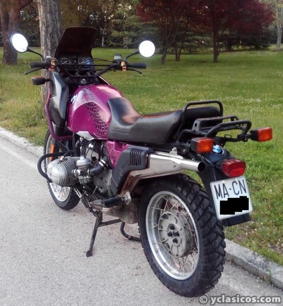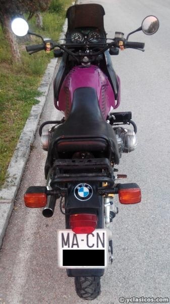 Moto BMW R100GS del año 1991 puesta al día después de un tiempo parada con pocos kms desde nueva (40.000). Edición limitada en Morado (Carica Blue) muy pocas unidades fabricadas. Todos los aceites y líquidos cambiados (aceite motor, caja de cambios, cardan y frenos). Los filtros de aceite y aire también son nuevos. Se le han cambiado las juntas de los culatines y del cárter. Los grifos de gasolina, tuberías de conexión, los flotadores de ambos carburadores, todas sus juntas, las membranas y las agujas de cierre son nuevos. Pequeña fuga en el depósito soldada y recubrimiento epoxico en el interior. Batería nueva de 30ah. Neumático trasero nuevo. ITV al día valida hasta abril de 2018. Bujías nuevas. Todo el sistema eléctrico revisado. La pintura en general está en buen estado aunque algo gastada. Venta por cambio de residencia por eso no acepto cambios.
