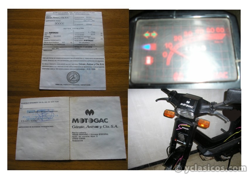 Vendo ciclomotor clasico ideal coleccionistas. Motogac Kanowey año 1990, buen estado, tiene documentación de compra del titular, pero nunca se matriculo, necesita matricula y papeles actualizados e ITV para poder circular, arranca, y funciona, los intermitentes de goma, se han cortado por el paso del tiempo, necesita una sencilla puesta a punto mecanica , en general bastante bien conservado, el ciclomotor esta en Menorca, precio 225 € mas portes, envio a cualquier provincia, pago por transferencia bancaria, color negro.