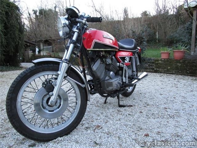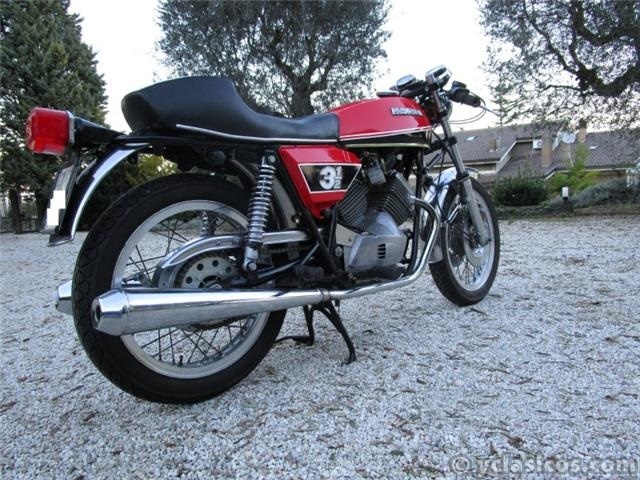 Este es un hermoso ejemplo de clásicas motocicletas italianas de los años 70