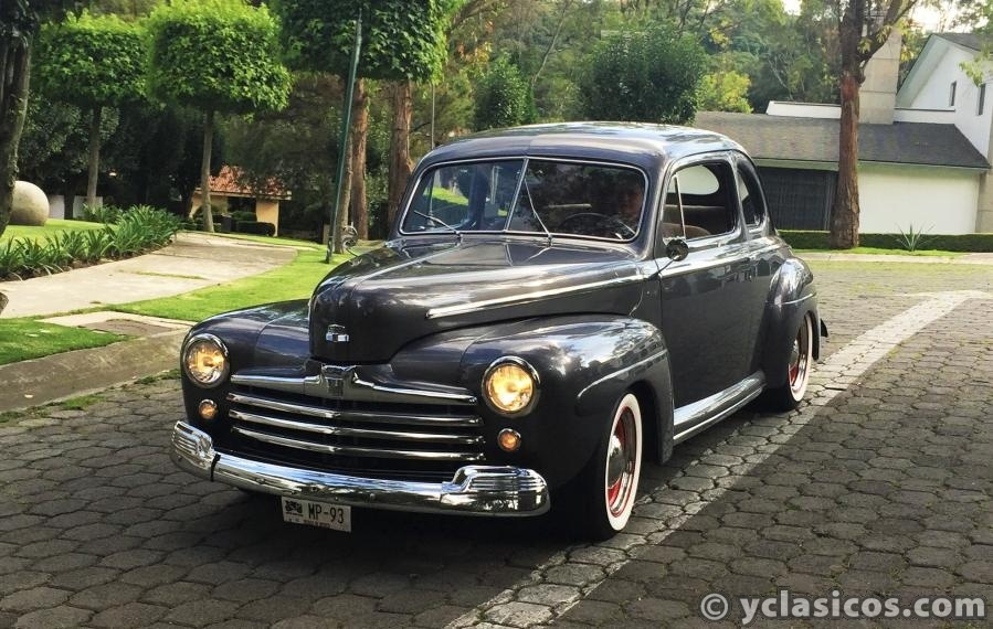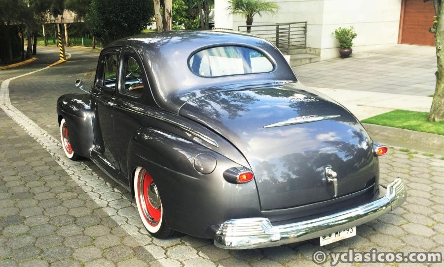 • Rines hechos a la medida por Wheel Vintiques, mismo estilo que los originales del 47 pero en medida 16x7 al frente y 17x9 en los traseros, llantas marca Falken "rango V" hechas a la medida por Diamond Back tires con cara blanca medidas 215/60 R16 al frente y 235/45 R17 atrás. Todos los tapa cubos hechos a la medida por Wheel Vintiques iguales que los originales del Ford 1947. Una belleza y definitivamente el toque distintivo de este auto.