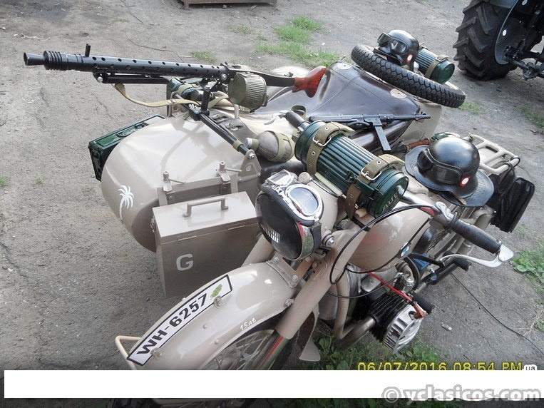 Se vende moto Dnepr M72(K-750) replica BMW R71 alemana del ejercito aleman del periodo de segunda guerra mundial. Todas piezas originales restaurados, como nuevo - ves en las fotos. Con sidecar. Con papeles listo para matricular. Se vende con todos accesorios como ves en las fotos. Se puede matricular como histórico. O cambio por un todocamino del mismo valor ( BMW, Toyota; Lang Rover). Poco negociable. Escucho ofertas por WhatsApp. Color arena