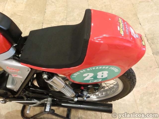 246 CC., MONOCILÍNDRICA, 2 TIEMPOS, 5 VELOCIDADES, MOTOR ENDURO 250 54M (AÑO 1976), CHASIS IMPALA 4M, DEPÓSITO IMPALA SPORT 24 HORAS, PINTURA BICOLOR CON FILETEADO, AMORTIGUADOR DE DIRECCIÓN, LLANTAS DE ALUMINIO, VELOCÍMETRO DIGITAL, AMORTIGUADORES GRADUABLES 5 POSICIONES, FRENOS DE TAMBOR MORINI, RESTAURADA, PERFECTO ESTADO Y CORRECTO FUNCIONAMIENTO, HOMOLOGADA PARA CARRERAS Y COMPETICIÓN DE CLÁSICAS. MÁS INFORMACIÓN EN: http://antequeraclassic.com/catalogo/montesa-impala-250-competicion