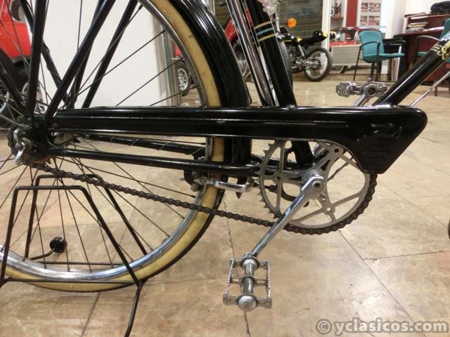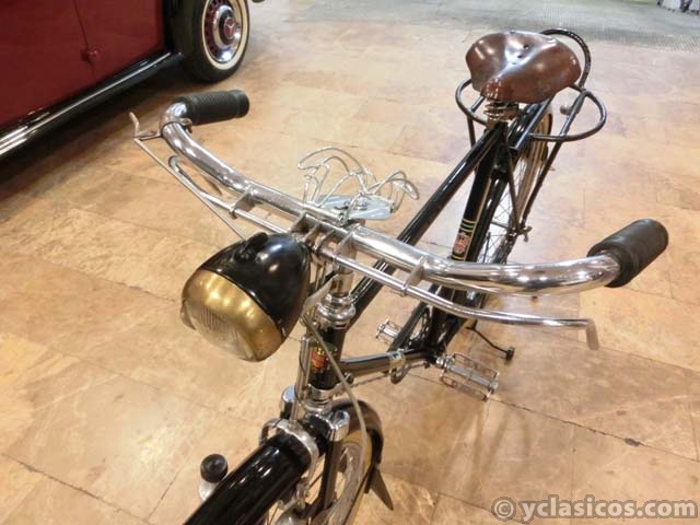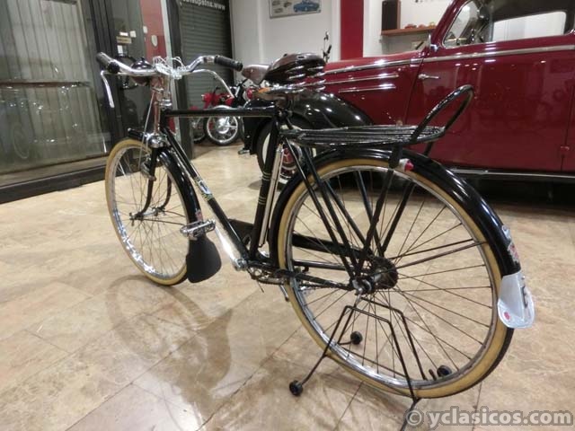FRENOS DE VARILLA, SILLÍN ORIGINAL DE CUERO BH, FARO Y DINAMO BOSCH CON LUZ TRASERA, CEPO SUJETA-BOCADILLOS, FALDILLAS DELANTERA Y TRASERA, RUEDAS DE RADIOS CON PALOMILLAS ORIGINALES, PEDALES BH, BOMBÍN CROMADO, TIMBRE ACCIONADO CON PEDALEO, NÚMERO DE CHASIS, PARRILLA TRASERA REDONDA, MUY BUEN ESTADO, PERFECTO FUNCIONAMIENTO. INCLUYE SOPORTE APARCAMIENTO. MÁS INFORMACIÓN EN: http://antequeraclassic.com/catalogo/bicicleta-bh-especial