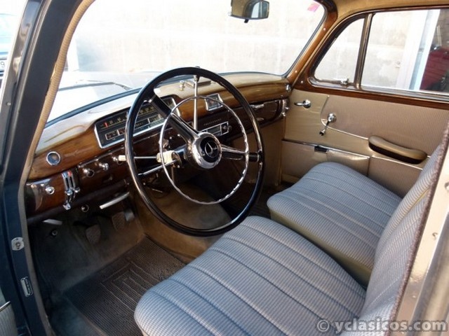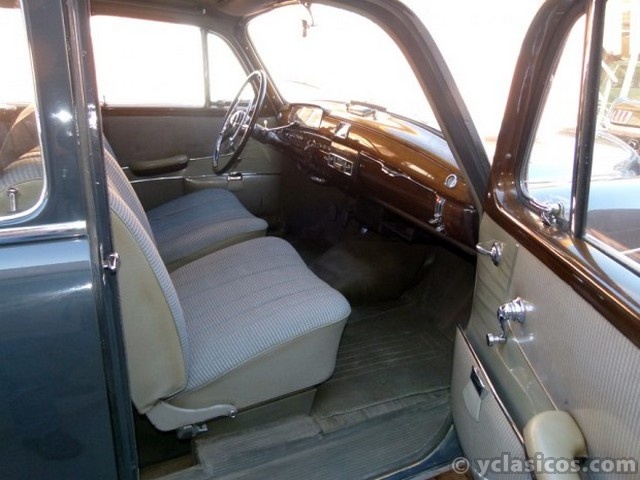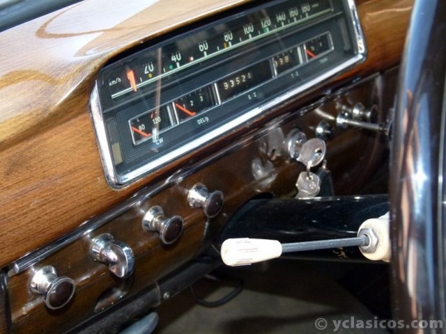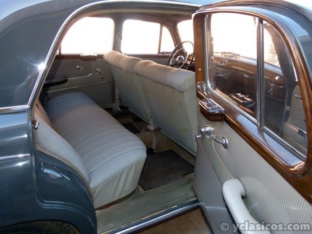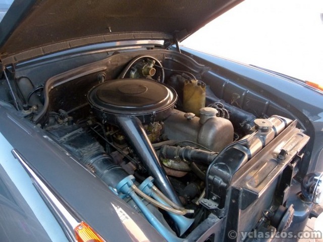 Cuenta con cambio manual de cuatro velocidades, techo abierto de fábrica muy raro de encontrar, interiores en madera, tapicería original, radio de época y todo el glamour y la comodidad que ofrecía la casa en esta berlina de lujo.
