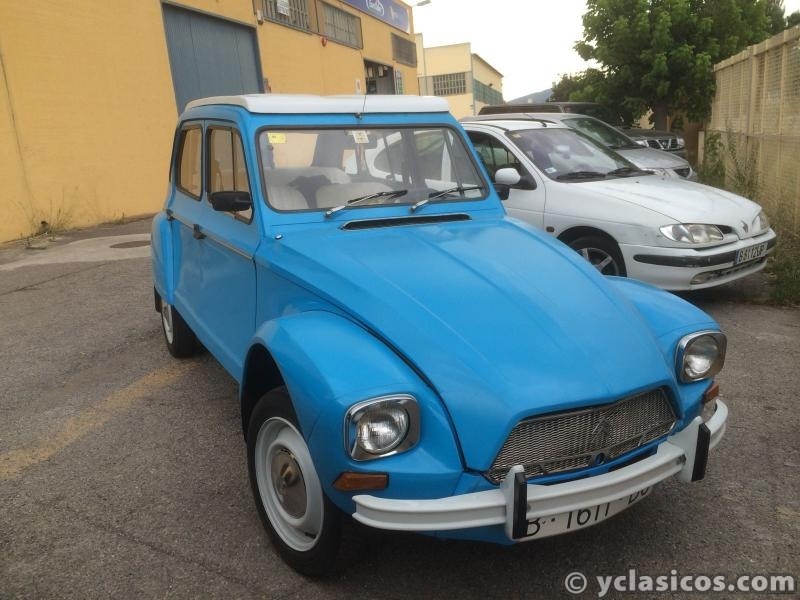 Se vende Citroen Dyane 6 de 1975. ITV recién pasada, funciona perfectamente de mecánica. Se entrega con techo de lona y tencho de fibra original. Bola de enganche homologada. Cambio de nombre incluido en el precio. Coche divertidisimo e ideal sobretodo en verano para ir descapotado!! Posibilidad de entregar pintado en color azul original (Precio 3500€). Color Azul