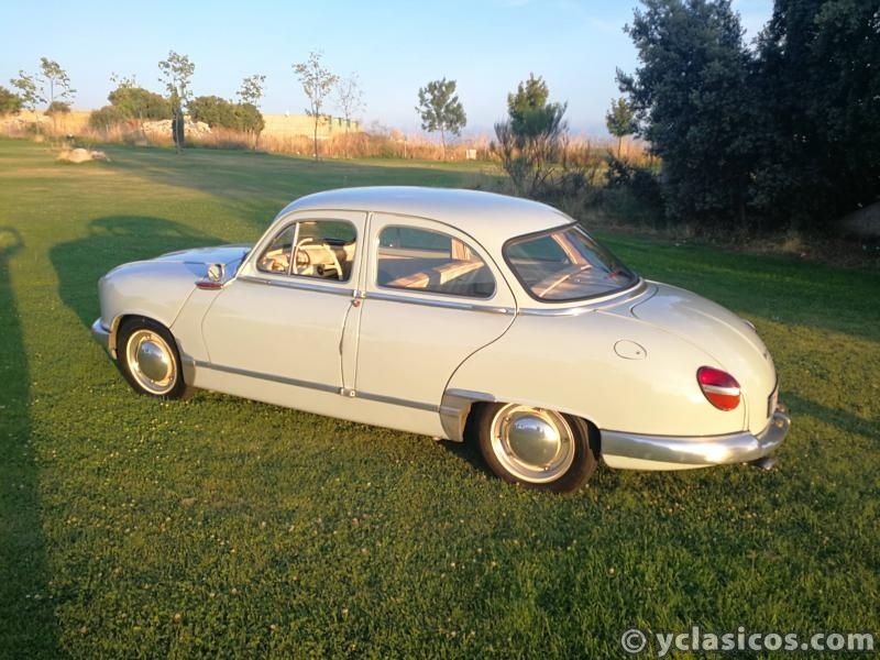 Panhard Dyna de 1. 958. Un vehículo muy singular y escaso. en un estado de conservación excelente para sus años, se trata del modelo Dyna de 50 CV y 4 puertas homologado para 6 plazas, con una forma de caminar muy agil comparado con su competencia de la época, debido a su potente y sofisticado motor de 2 cilindros, 850 c. c fabricado en aluminio y refrigerado por aire. Hay muy pocas unidades en el mercado europeo y menos a la venta, conserva su tapicería original y tiene unas pequeñas muestras de óxido superficiales muy poco importantes. Está con la ITV vigente y listo para circular. www. trebolmotorsport.