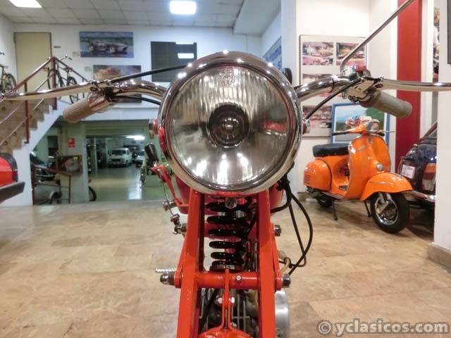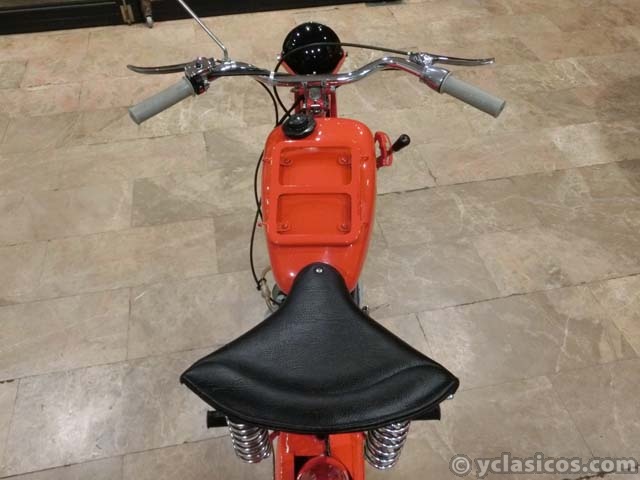 65 CC., 2 CV, 1 CILINDRO, MOTOR 2 TIEMPOS, 3 VELOCIDADES, CAMBIO DE MARCHAS JUNTO AL DEPÓSITO, PINTURA ROJA CON FILETEADO DORADO - NEGRO, LLANTAS CROMADAS DE RADIOS, BANDEJA PORTAEQUIPAJES DELANTERA Y TRASERA, MUY ORIGINAL, PERFECTA RESTAURACIÓN COMPLETA, CARBURADOR ORIGINAL IRZ, INCLUYE CARBURADOR AMAL DE REGALO, MATRÍCULA ORIGINAL (T), DOCUMENTACIÓN e ITV AL DÍA. MÁS INFORMACIÓN EN: https://antequeraclassic.com/catalogo/guzzi-hispania-65-1959