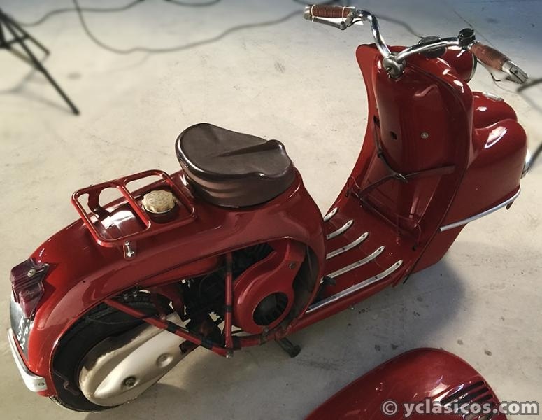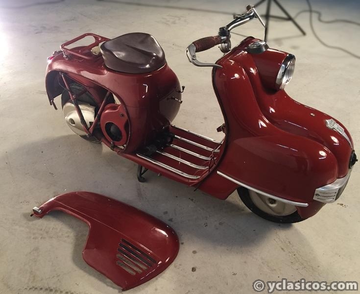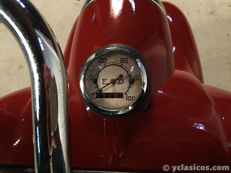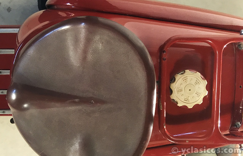 APRECIACIONES: La pintura está en buen estado en general original con patina con algún desconchado (Ver foto). Sillín con baquelita original. Embellecedores en buen estado y originales, falta pulir. Motor gomas y cromados en buen estado.
