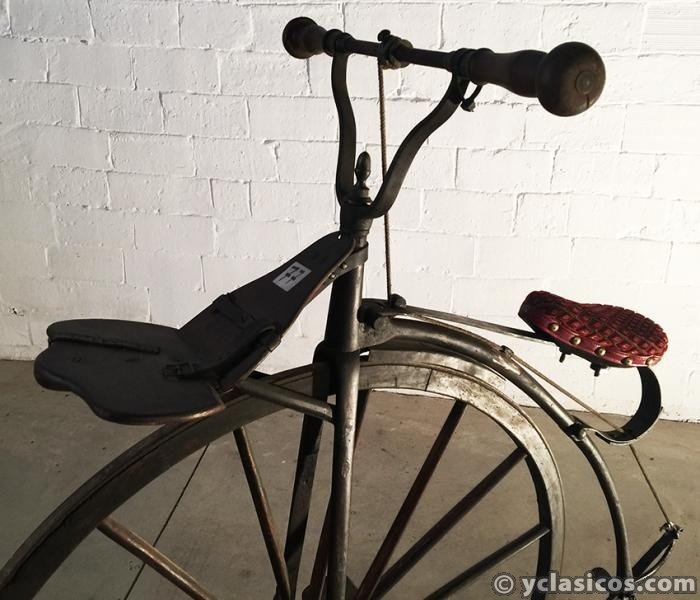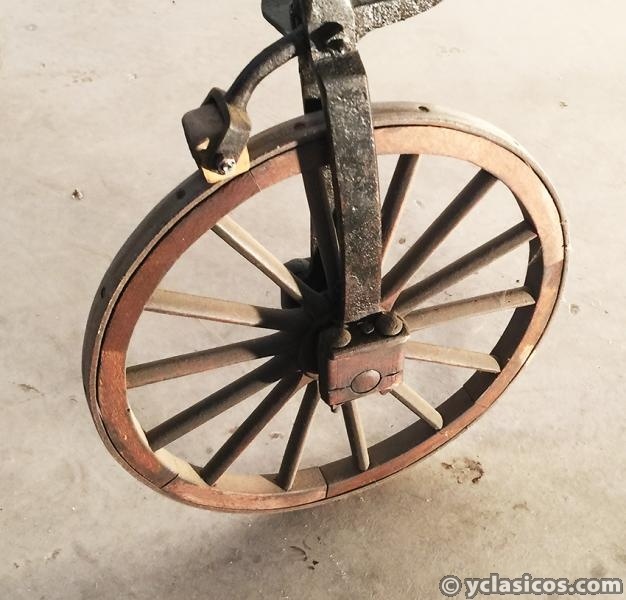 DESCRIPCIÓN: Velocípedo de colección, en hierro forjado y madera vista. Curioso y poco practico práctico definen a un clásico.