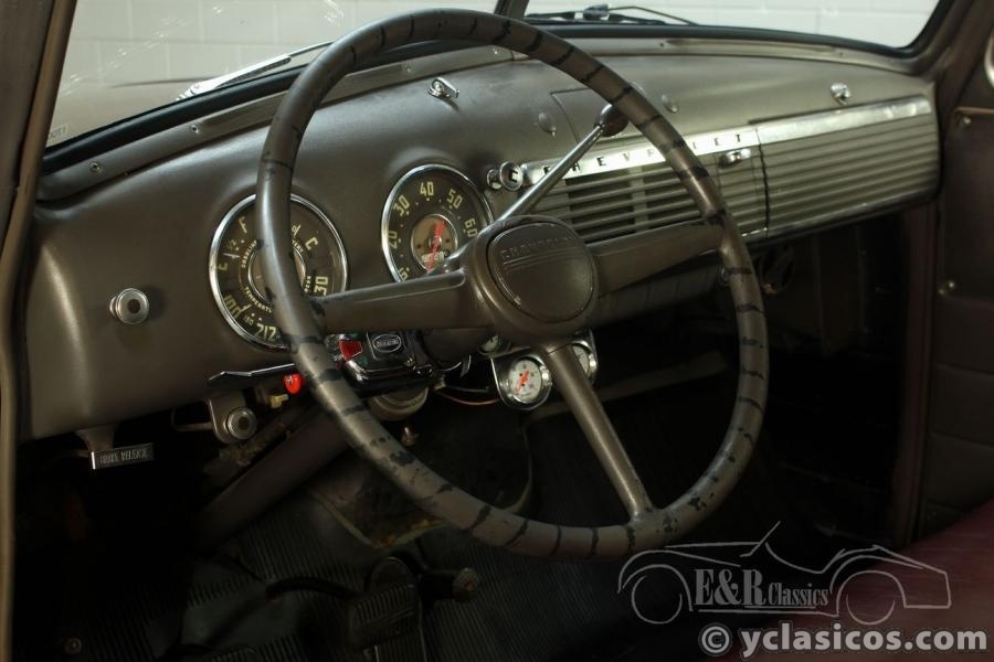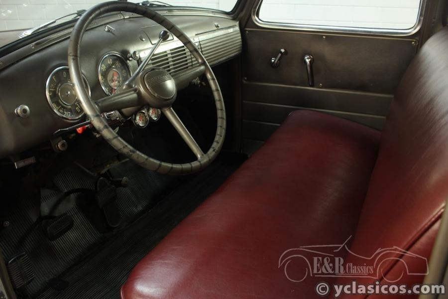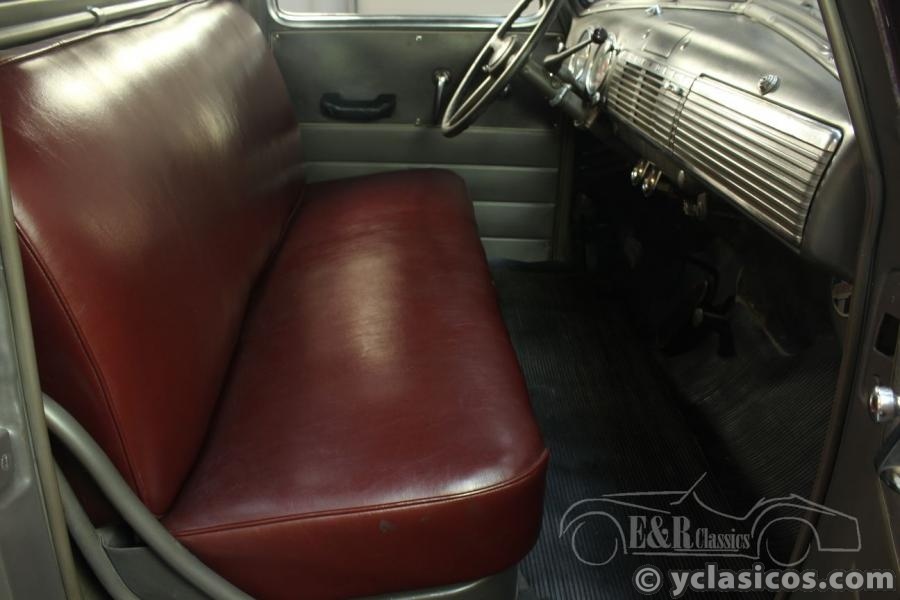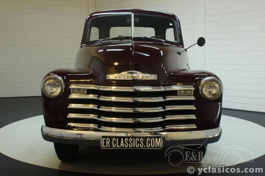 This Chevrolet 3100 Pick-up was new delivered in 1949. This Pick-up is the rare 5-window version and has a split front window. This car has the marvellous colour Cape Maroon with a burgundy red interior, chrome bumpers and the original Chevrolet wheel covers. This Pick-up 3100 has the 6 in line engine and 3 speed manual gearbox. When you are looking for a great Chevrolet Pick-up 3100, this one is a good choice.<