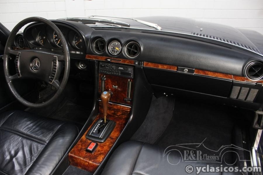 We offer for sale this beautiful Mercedes Benz R107 in the 350SL version with the well-known strong V8 engine with automatic gearbox. Dark blue paint with beautiful black leather interior. This 350SL has been for a longer time from the last owner who has had it well maintained. Nice and good driving Mercedes convertible for a lot of fun.