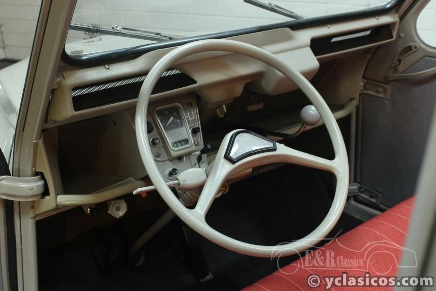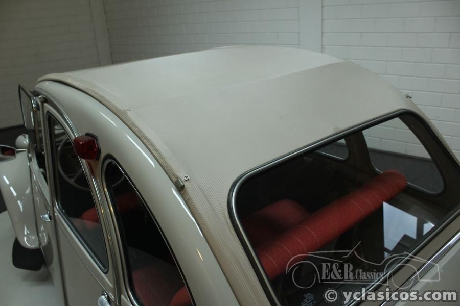 This beautiful 1966 Citroën 2CV comes from a real enthusiast who has owned the car for 30 years. The 2CV has been body-off restored in the Netherlands and is in great condition. There is a photo album and many invoices of the restoration. The luxurious Azam version has extra chrome brackets on the front and rear bumper, luxurious upholstery and a bakelite steering wheel. Furthermore, the car is provided with a light grey paintwork together with a red cloth interior. The Citroën is powered by the 425CC 2 cylinder engine in combination with the 4-speed manual gearbox. In short, a Citroën 2CV in top condition that is ready for a lot of driving pleasure.