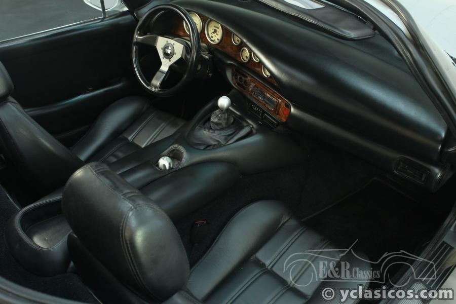 This LHD TVR Chimaera 500 was new delivered in 1996 and is very well maintained. This TVR has the original colour combination Alusilber with the optional black leather interior. The car is in fabulous original condition. The car is equipped with the powerful and popular 4988CC, V8 engine in combination with de 5 speed manual gearbox. This special and fabulous driving TVR guarantees a lot of driving fun.
