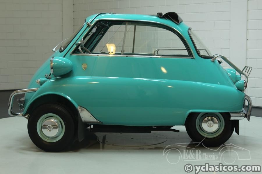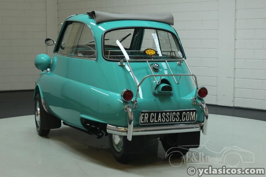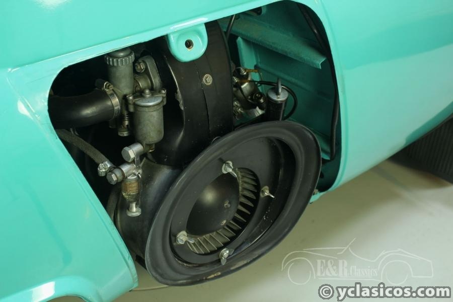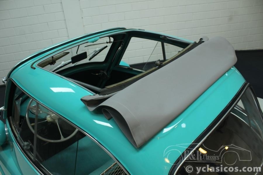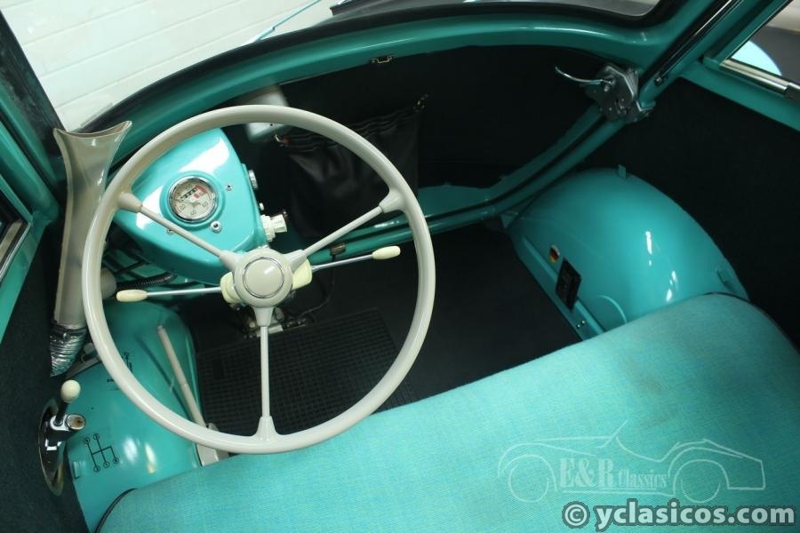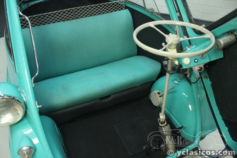 This is a beautiful BMW Isetta 300 that was delivered new in Germany in the year 1959. The car was restored in Germany in 2013 and is in great condition. Both the interior and exterior are executed in the beautiful color BMW Türkis (Turquoise). Furthermore, the car has a chrome luggage rack and chrome hubcaps. The BMW is powered by the 298cc 1 cylinder engine in combination with the 4-speed manual gearbox. In short, a beautifully restored 4 wheel version of the BMW Isetta 300. A real collector’s item!