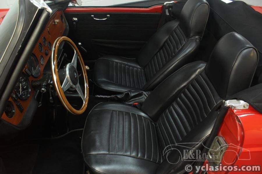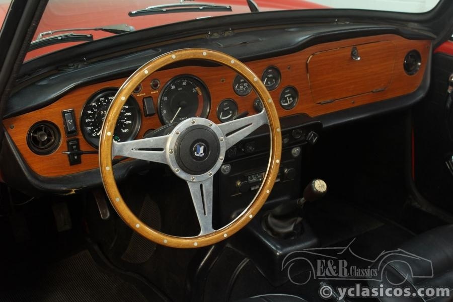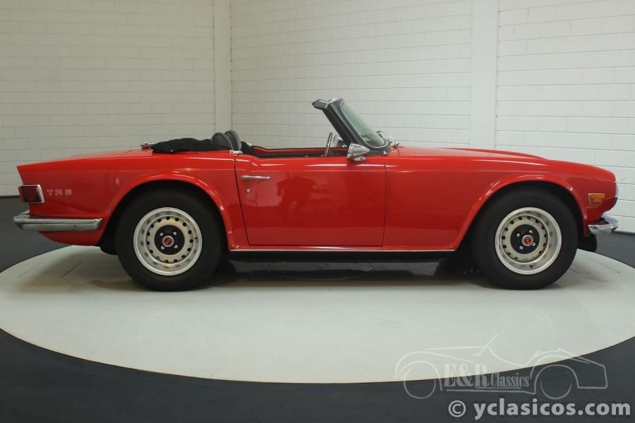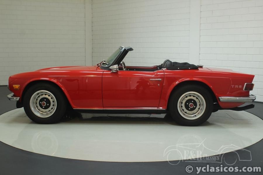 This Triumph TR6 convertible was new delivered in 1971 and is in very good condition. For about 16 years this car was owned by a real enthusiast who took great care of it. The TR6 has the original Signal Red colour combined with a black interior. This TR6 is driven by the 2498CC, 6 cyl engine together with the 4 speed manual gearbox with overdrive. The car also has several upgrades such as 123 ignition and an electric fan. So a marvellous Triumph TR6 cabriolet, perfectly serviced and ready for lots of driving fun.