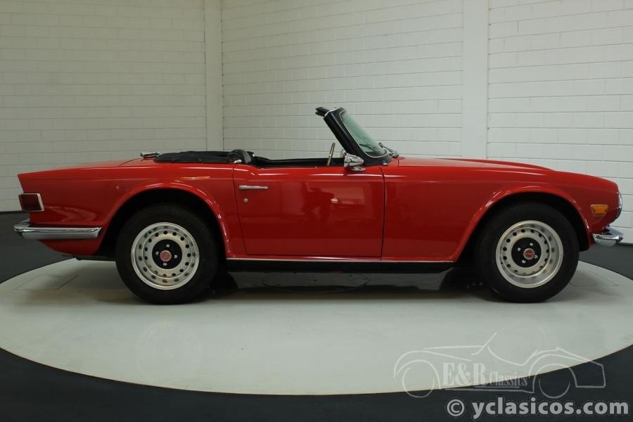 Betreft een Triumph TR6 cabriolet uit het jaar 1970. De auto is in 2018 gespoten in de prachtige kleur Signal Red. Dit is gecombineerd met een zwart interieur, een nieuwe zwarte soft top, een houten stuurwiel en de originele TR6 wielen. Verder is de auto voorzien van de 2498cc 6 cilinder motor samen met de handmatige 4-versnellingsbak. Als u op zoek bent naar een heerlijk rijdende in zeer goede staat verkerende TR6, dan is dit exemplaar zeer geschikt voor u.