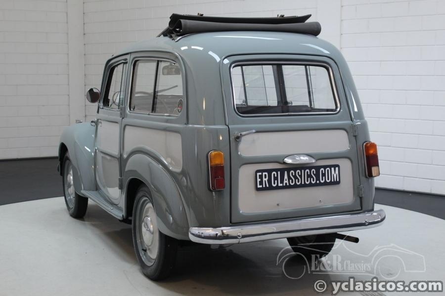 The Fiat 500C is also known as Topolino, which means "Little Mouse" in Italian. This compact city car was built by Fiat between 1936 and 1955 in various versions. The car that we offer for sale is a rare station version, the Fiat 500C Belvedere. This car was delivered new in Italy and was extensively restored in the past. Both the two-tone paintwork and the brown interior are in beautiful condition. Get behind the wheel of this Topolino Belvedere, slide open the roof and imagine yourself back in the 50s. This vehicle is also very suitable for advertising purposes. Are you looking for a beautiful Fiat 500C Belvedere in a beautiful color combination? This car is definitely worth a visit in our showroom.