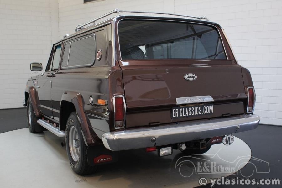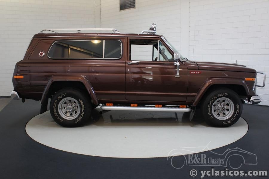This very tough looking Jeep Cherokee Chief was built in 1980. The Chief version of the Cherokee was supplied by Jeep as two-door with improved off-road capabilities. This car was extensively restored by the loving owner in the period 2011-2013. This Cherokee is painted in a beautiful brown metallic paint, a new custom leather interior was installed. Also extensive work on the engine and chassis has been undertaken. Under the hood of this four-wheel drive Jeep is the 360CUI 5.9L V8 engine coupled to an automatic gearbox that makes the car fantastic to drive. Furthermore, this Cherokee Chief is equipped with various accessories such as a bullbar, footboards, audio installation and fog lights on the roof. Are you looking for a beautifully custom restored SUV with a V8 engine? You are very welcome to come and see this Jeep Cherokee Chief in our showroom.