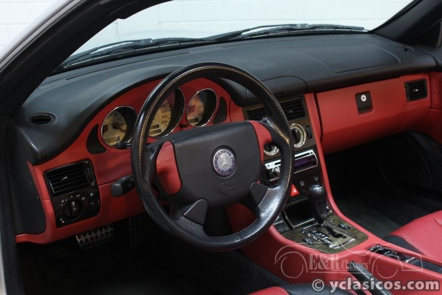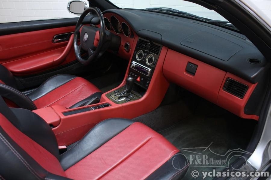 This beautiful Mercedes-Benz SLK 230 Kompressor was built in 1997 and has a beautiful silver-gray metallic paint. The SLK has demonstrably driven only 72.909 kilometers since new and is therefore in beautiful condition! The interior has red with black leather upholstery and various options such as seat heating, air conditioning and cruise control. The powerful 2290cc compressor engine and automatic gearbox ensure a fantastic driving Mercedes, both comfortable and sporty. The ex-works AMG styling package with front and rear bumper, side skirts and 17 ”rims give this SLK a more sporty and very stylish look! Are you looking for a German convertible with low mileage and in very good condition? You are very welcome to come and see this and other Mercedes-Benz SLK’s in our showroom.