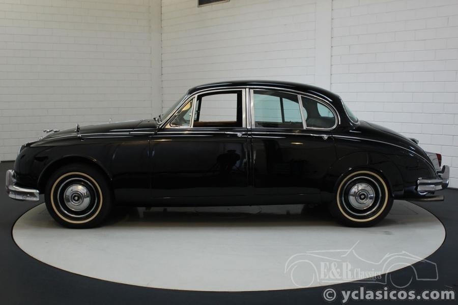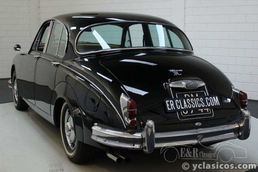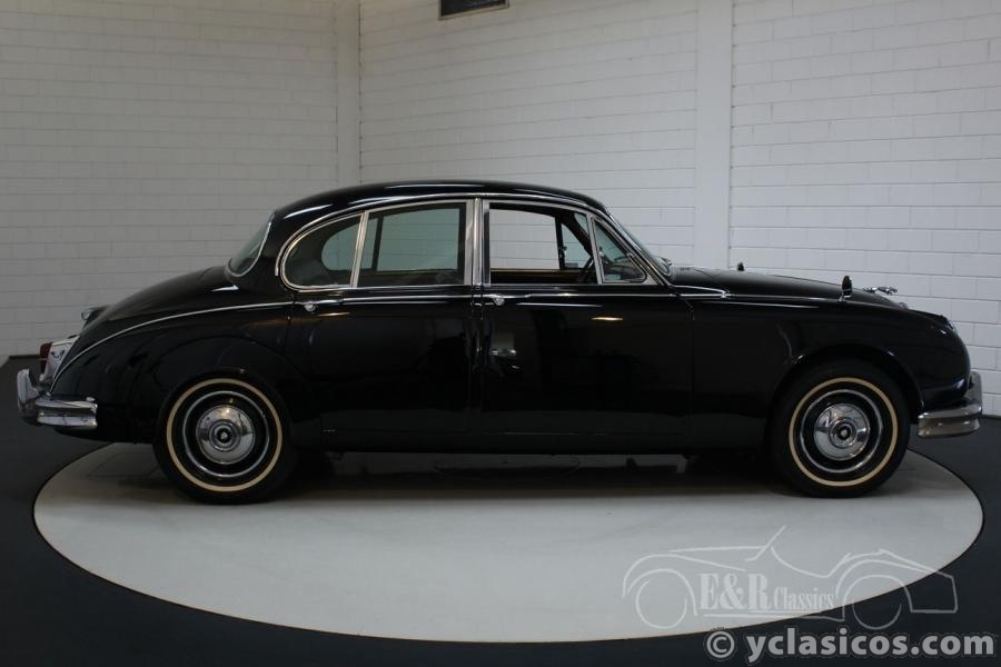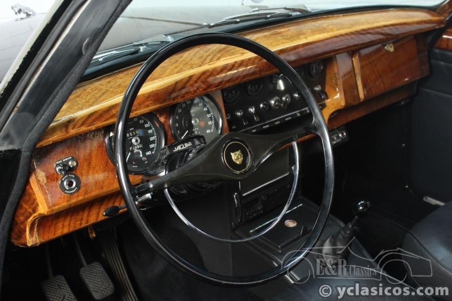 This beautiful Jaguar MKII was built in 1967. This English saloon, built for true gentlemen, is equipped with the powerful 3442cc 6-cylinder engine and a manual gearbox. The black paintwork combines fantastic with the chrome parts on the car. The interior is very stylish with black Connolly leather upholstery and beautiful wooden parts such as the dashboard. The Jaguar MKII 3.4 was restored at the end of the 1990’s and has since been owned by one loving owner who has maintained the car really well. Are you looking for a good-looking and left-hand drive Jaguar MKII 3.4? You are very welcome to come and see this car.
