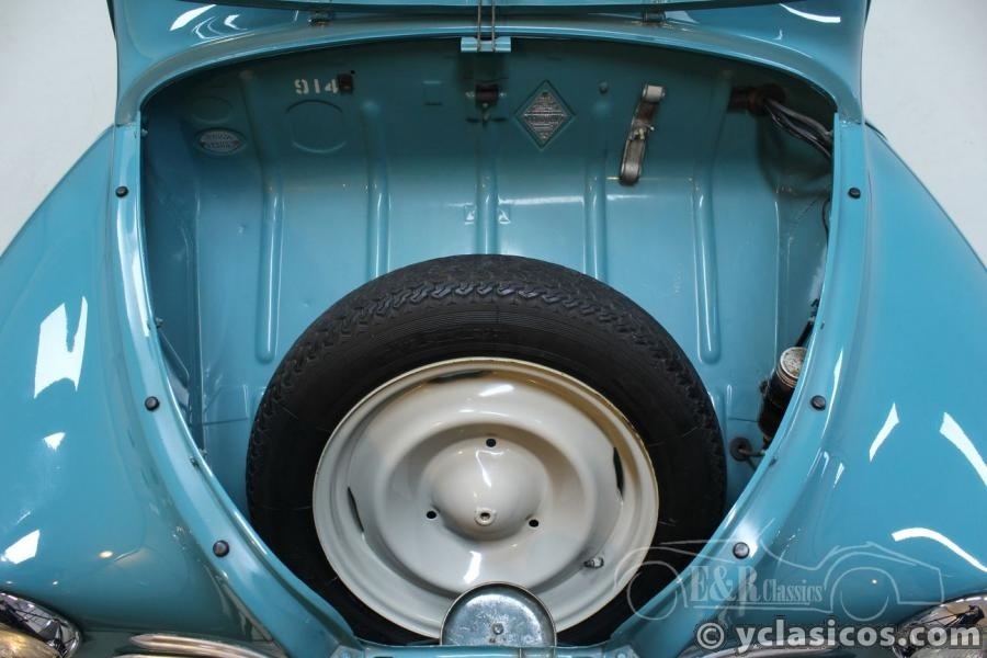 This Renault 4CV from year 1960 is really in top condition. The car has been very skillfully restored in the past. The beautiful Azure blue paintwork in combination with the gray / red trim and the white tieboard give this Renault that typical Mediterranean 60s appearance. Equipped with a 21 hp 747cc 4-cylinder engine and a manual transmission. Ready for many enjoyable journeys, imagine yourself in La Douce France with this beautiful Renault 4CV.