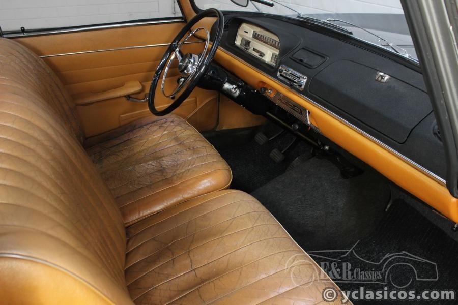 This Peugeot 404 Saloon was built in 1965. The car is in very good condition. In the period 2018-2019 a lot of technical work was been done on this Peugeot. The powerful 1.618cc four-cylinder injection engine and manual gearbox ensure that the car drives great. The paintwork is grey metallic with various chrome accents. A beautiful combination with the brown leather interior, which is in good original condition with patina. Are you looking for a very well maintained, comfortable and spacious classic car to make beautiful tours with? We invite you to come and see this Peugeot 404 Saloon in our showroom.