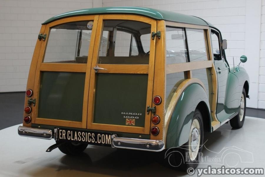 This Morris Minor 1000 Traveller from year 1967 is in top condition. The previous owner has extensively restored the Morris. What immediately catches the eye on this Traveller is the quality of the wooden parts. The 1.098cc four-cylinder engine runs very well and is coupled to a manual gearbox. A beautiful car with beautiful paint in the colour Almond Green, with that typical English looks from the 60’s. A great classic car to drive on a wonderful tour with, and thanks to the space, also very suitable for longer trips. You are very welcome to come and see this and other Morris Minor Travellers in our showroom.