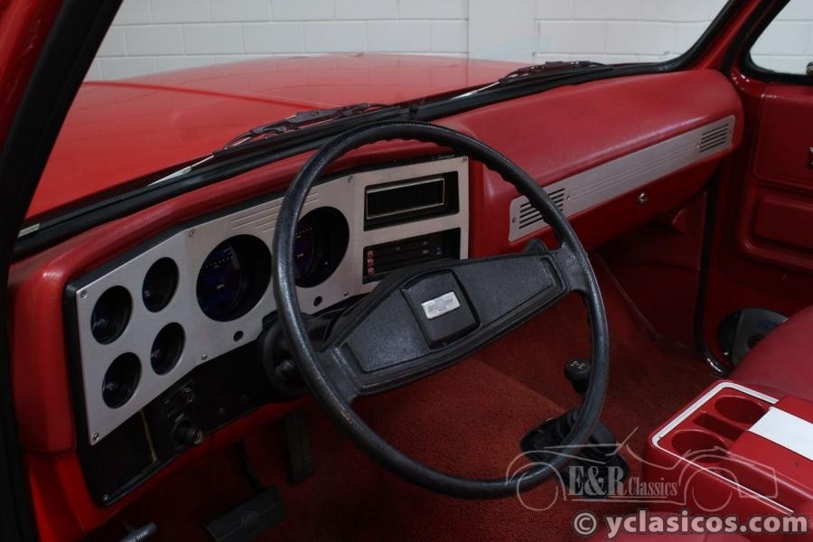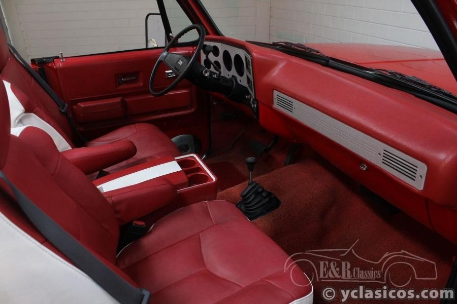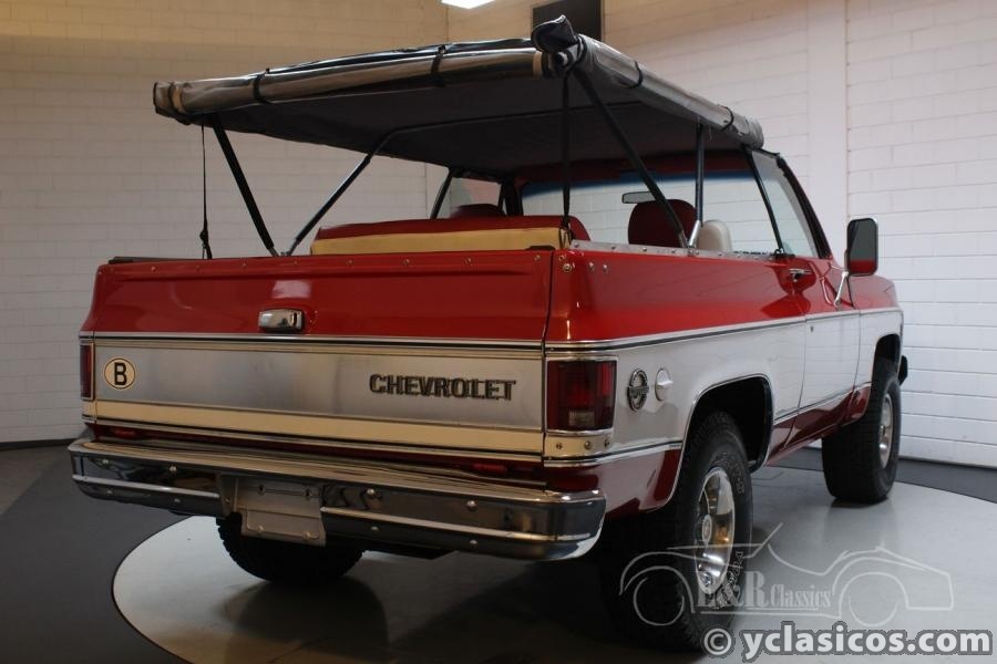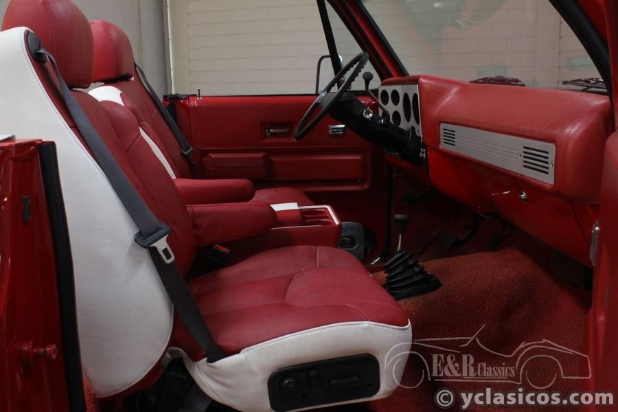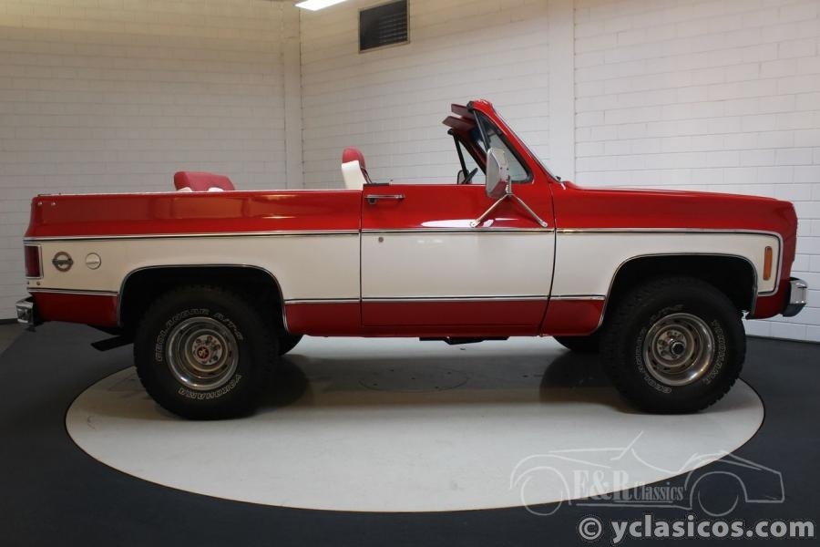 A unique convertible! The Chevrolet Blazer K5 that we hereby offer for sale was built in 1975. This car is one of only 548 cars built from the Blazer Cabriolet. A very impressive American classic car with a 350 CUI 5.7L V8 engine, automatic gearbox and at the time optional four-wheel drive. The two-tone paintwork in the colours red with white combines very nicely with the many chrome details and the red with white interior. Both the bodywork and the interior are in beautiful restored condition. This Chevrolet Blazer comes with a black soft-top and a white hard-top. Are you looking for a unique American classic in very beautiful condition? Contact us for more information!
