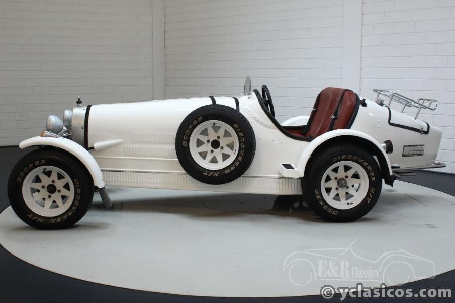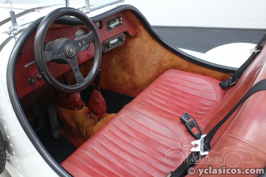 This is not just a replica of a Bugatti from the 1920s. This beautiful car with classic boattail bodywork was professionally built in 1981 by Autohaus R. Kühn from Hamburg (DE), a specialist in dune buggies and replicas. The white paintwork of this AHK Bugatti combines beautifully with the red interior. This car is equipped with many characteristic details such as louvres, leather belts, brooklands windows, thermometer on the radiator and the spare wheel on the side of the car. The 1600cc four-cylinder boxer engine placed in the rear, the seating position in this car and the low weight ensure a unique driving experience with this beautiful AHK. Are you looking for a unique classic car which will attract a lot of attention and make fantastic beautiful trips? Contact us for more information about this AHK Bugatti.